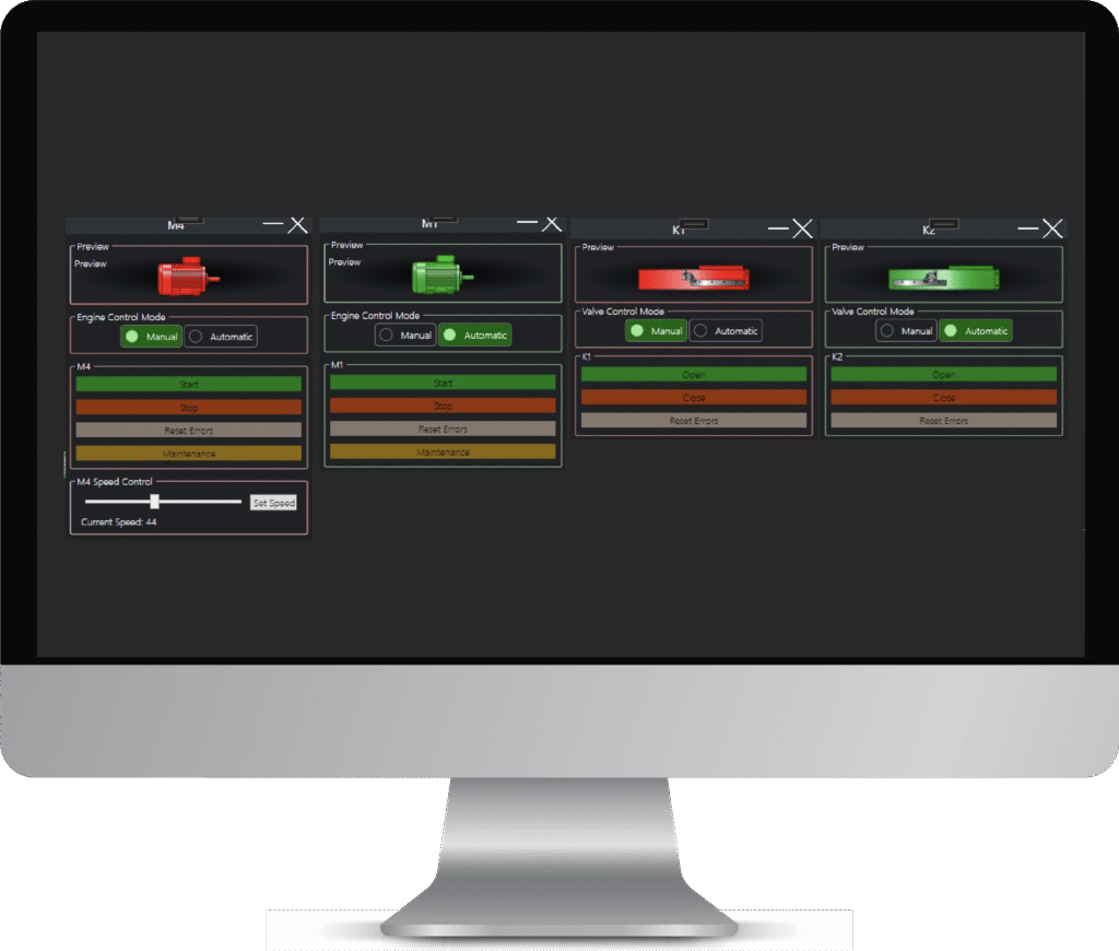 Sıradanlaşmış ve demode SCADA sistemlerin aksine biz kendi uygulamamızı geliştirerek daha esnek ve modern bir arayüz sunuyoruz. Bu bağlamda C, C++, C# dillerinin desteği ile geliştirdiğimiz SCADA'mız ile alışılagelmiş SCADA'lara göre daha modern, daha hızlı, daha esnek arayüzlerle hizmetinizdeyiz. Haberleşme olarak OPC UA sistemini kullanmaktayız. Raporlama sistemi olarak ise Microsoft SQL Server kullanmaktayız. Bu sayede raporlarınız her daim güvende olmaktadır.